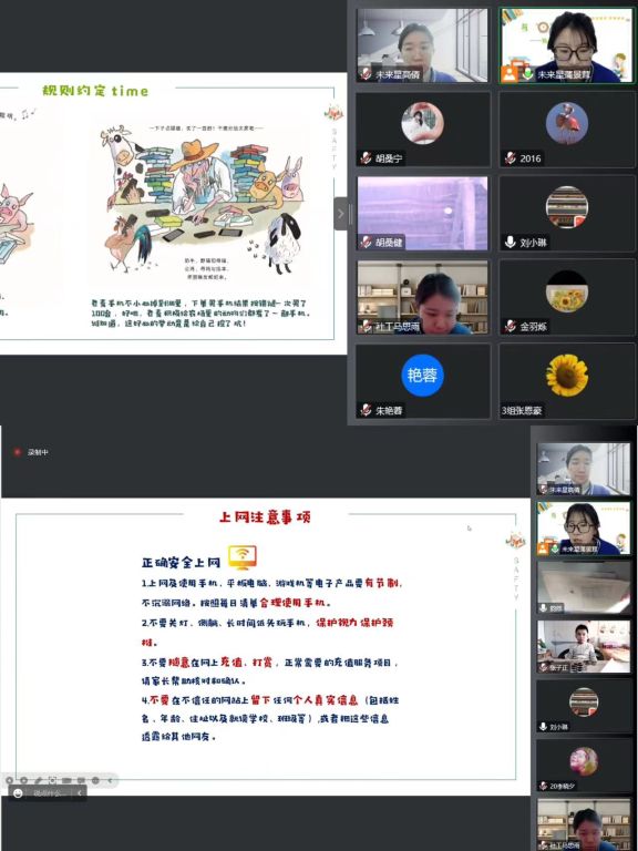 “老麦有部手机,时尚又聪明......”社工与儿童共读绘本,以“局外人”的身份看待沉迷手机的不良影响,一同思考老麦为农场动物制定玩手机的规则的原因,同时引导儿童思考:规则的建立不只是对自己行为的约束,更是对自己的锻炼与考验,由此带领儿童进行规则约定,与儿童共同思考如何制定规则,并邀请儿童与家长一起遵守规则,做自己假期的小主人。