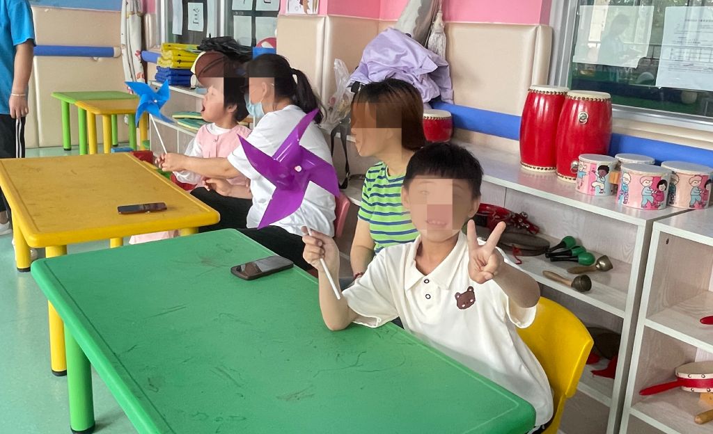 在康复中心老师《向快乐出发》欢快的歌声中活动正式开启。活动伊始,小朋友们通过歌曲、敲鼓、手势舞等才艺表演,向我们传递着节日的快乐,用甜美的童声,稚嫩的小手,感动了每一位观众,每个表演结束我们都会发放礼物、零食来表示对他们的鼓励。活动过程中,社工人员把精心准备的歌曲献唱给小朋友和家长,并把礼物“趣味风车”材料包分发给现场的小朋友,详细介绍了风车的制作技巧和注意事项,拿着自己制的小风车,孩子们的脸上都露出了灿烂的笑容。
