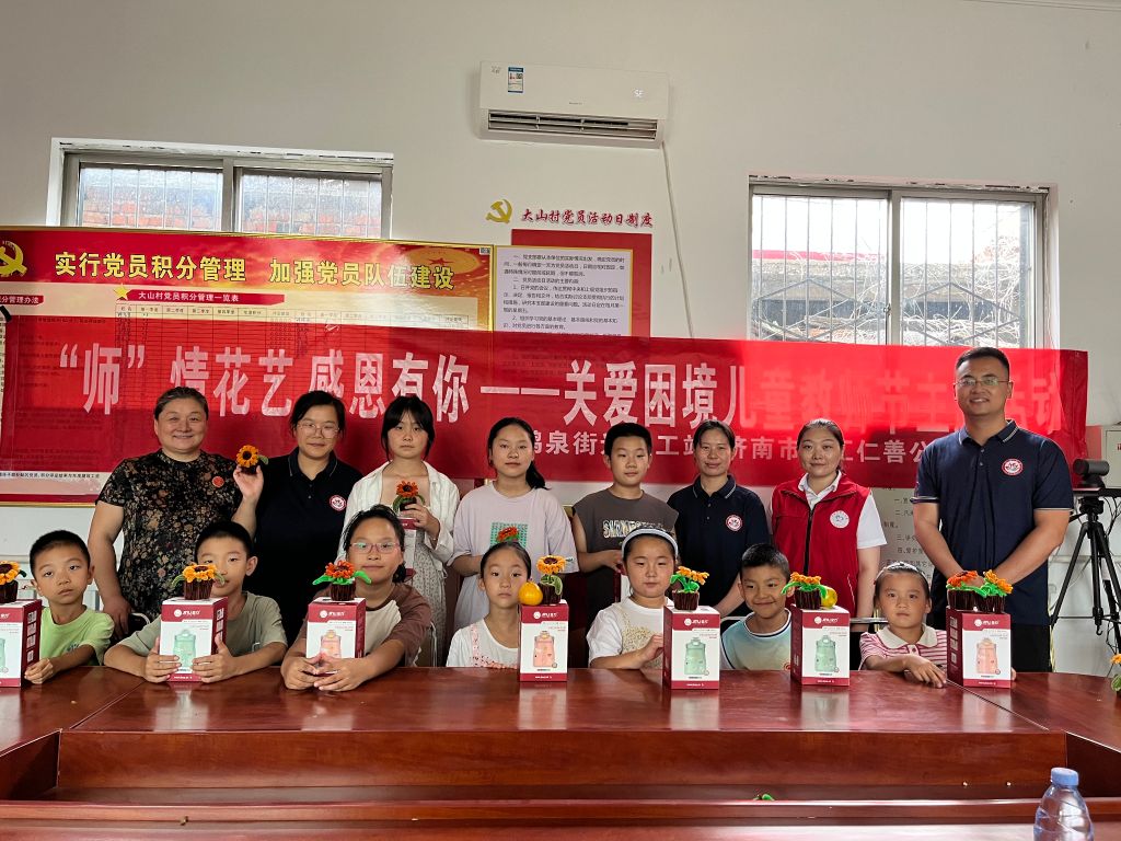 一朝沐杏雨,一生念师恩。浴着九月的金风,品味着鲜花的芬芳,伴随着丰收的喜悦,我们迎来了第39个教师节。为弘扬尊师重教的良好风尚,感谢老师们的辛勤付出和无私奉献,增进教师节传统文化传承,关心关怀困境儿童,培养孩子们尊师爱师的情怀,增强孩子的幸福感和安全感,9月9日下午,鹏泉街道社工站联合爱心志愿者在鹏泉街道大山村开展“师”情花艺 感恩有你——关爱困境儿童教师节主题活动。