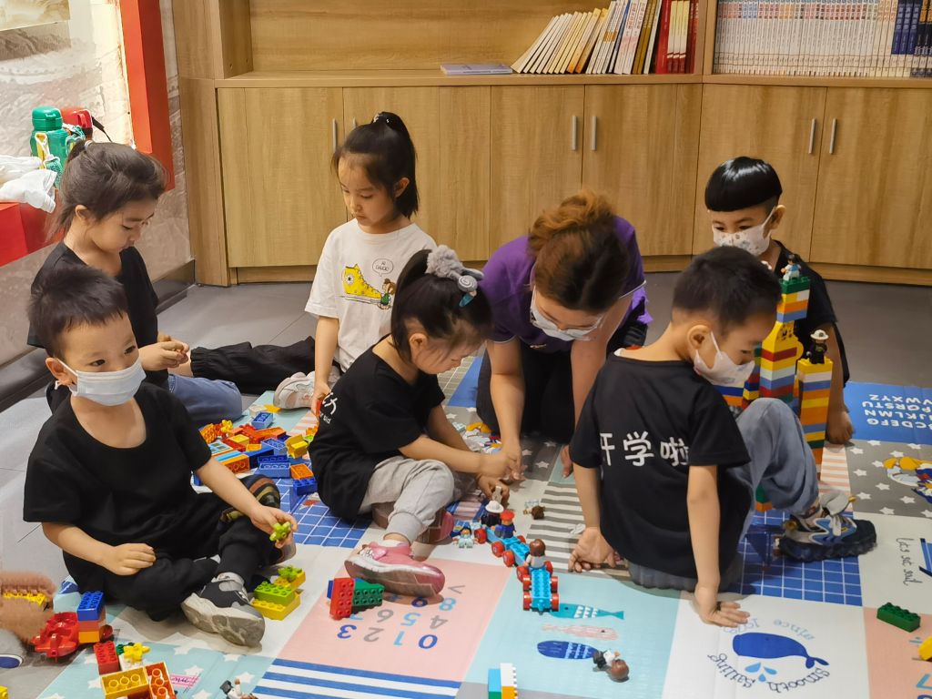 在观看宣传动画片后,社工站引导孩子们利用乐高积木的形式搭建自己心目中的理想家园,让孩子们通过简单的乐高搭配,表现出孩子们内心对于理想家园的热爱和期待。同时,社工引导孩子们对信息及网络生活安全形成正确的认知,减少内心的恐惧和焦虑,通过乐高积木拼搭这种游戏期孩童乐于接受的形式,让孩子们渐渐学会如何保护自己,学习什么是安全的生活空间,提升安全意识。