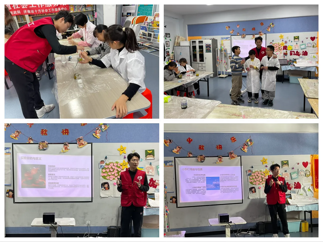 为探索科学奥秘,体验化学魔法,11月9日,十六里河街道社工站联合积成社区活动中心开展了流动儿童青少年化学兴趣小组的第三节活动——“熔岩灯”实验。本次活动旨在通过趣味盎然的化学实验,激发青少年对科学的兴趣,培养他们的团队合作、共同成长,并引导他们进行科学知识延伸,关注环境保护等社会议题。
