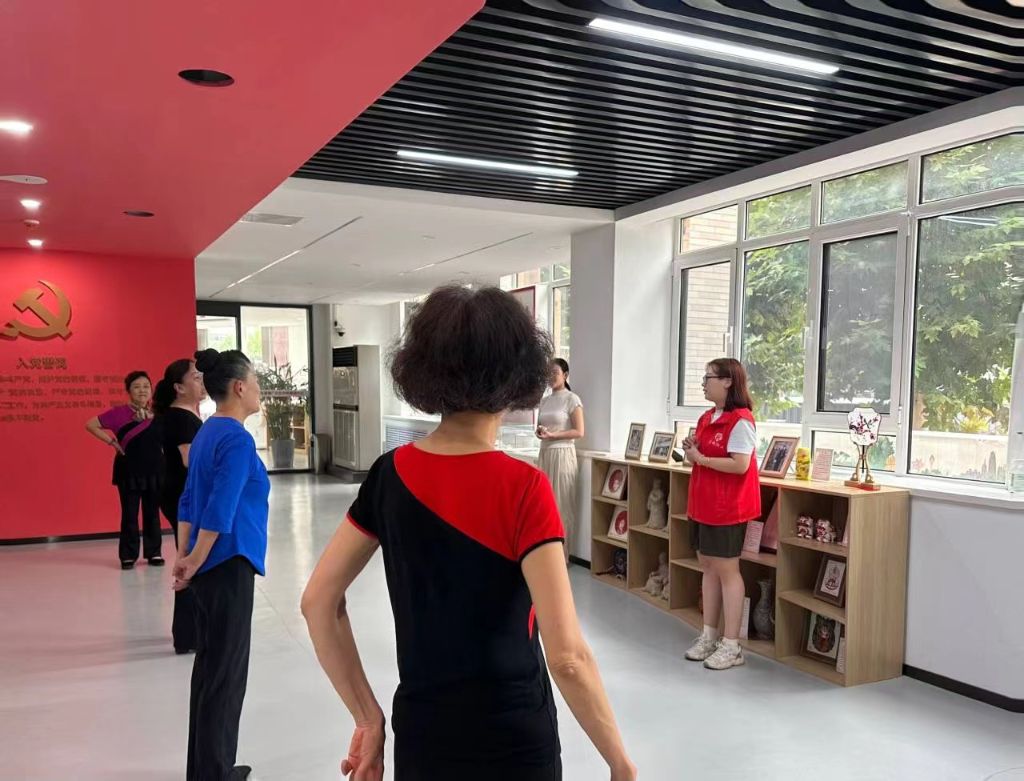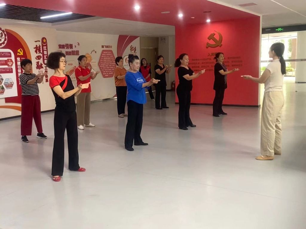 本节课结束后,社工鼓励组员们分享一下这节课的收获,吕阿姨说:“老师特别耐心,教的特别好,我很高兴能加入这个形体舞的学习班,等我学会了以后,我带着我的姐妹们一起跳!让她们都学习形体舞!”田阿姨也高兴地说:“等着社区搞活动的时候我们这几个姐妹们一起上台跳!”社工表示社工站往后会经常举办此类活动,给大家提供平台展示自己,通过开展活动让组员们能够促进邻里交流,提升自己,满足她们求友、求乐的晚年生活。