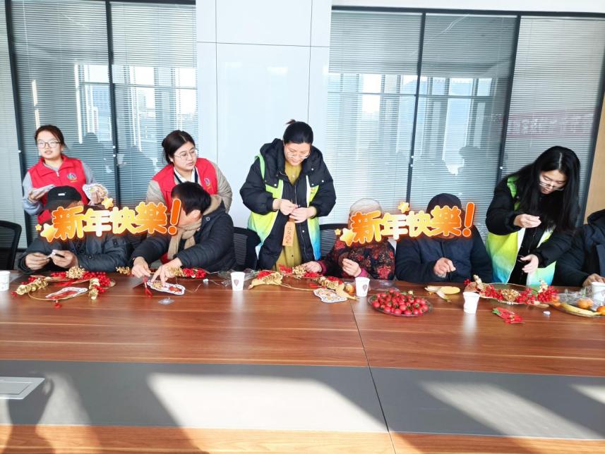联谊会开始后,志愿者将各种鲜花、枝叶和装饰品分到大家手中,社工向大家介绍了制作新年花环的流程和技巧,并耐心地指导大家如何编织花环。失独家庭的成员们也纷纷发挥自己的创意,制作出一个个美丽而富有特色的花环。大家将这些花环聚在手里,形成了一个美丽的花环长廊,象征着失独家庭成员们团结、互助和共度难关的决心。