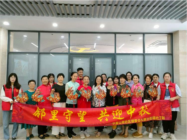 9月17日上午,在华夏山青社区居委会会议室,华夏山青社区居委会联合唐冶街道社工站举办“邻里守望、共迎中秋”中秋节活动。华夏山青社区20余名居民和4名山青院大学生志愿者参加此次活动。