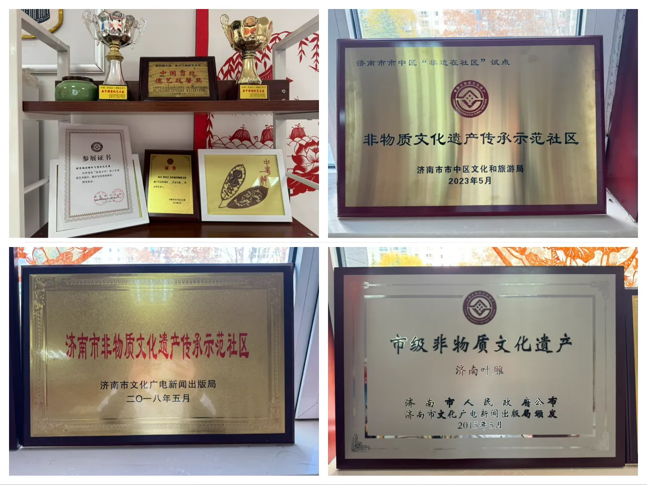 以其精湛的技艺和对传统文化的深刻理解,吸引了众多居民和共建单位的目光。在社区非遗工作室中,都老师细致地为我们介绍了剪纸和叶雕的起源、发展历程以及每一道工序的讲究。她的声音温和而坚定,透露出对这门艺术的无限热爱和尊重。