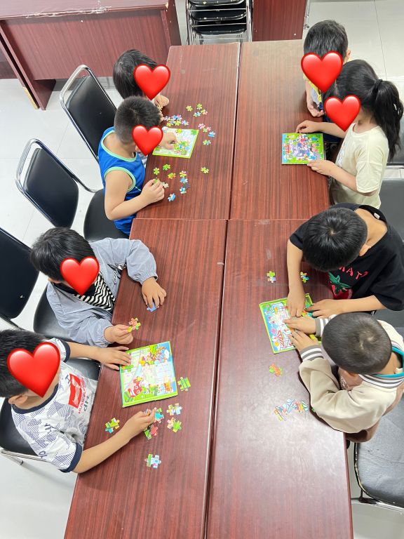 小组初期,社工扮演组织者和引导者的角色,鼓励组员依次进行简单的自我介绍,大部分组员略显拘谨。社工通过“破冰游戏”帮助大家进一步彼此认识,放松紧张的心情,游戏以孩子们喜闻乐见的“123木头人”使组员们逐渐投入其中,随着游戏的深入,大家渐渐展现出各种古灵精怪的动作,整个环节渐渐充斥起孩子们的欢声笑语。随后,社工带领组员进行拼图游戏,两两一组,过程中,从试探性的表达想法到慢慢的与伙伴交流,组员之间互帮互助共同完成拼图的那一刻,孩子们的脸上露出了开心的笑容。最后,驻站社工引导组员了解小组凝聚力及小组规则的重要性,并与大家共同制定小组契约。