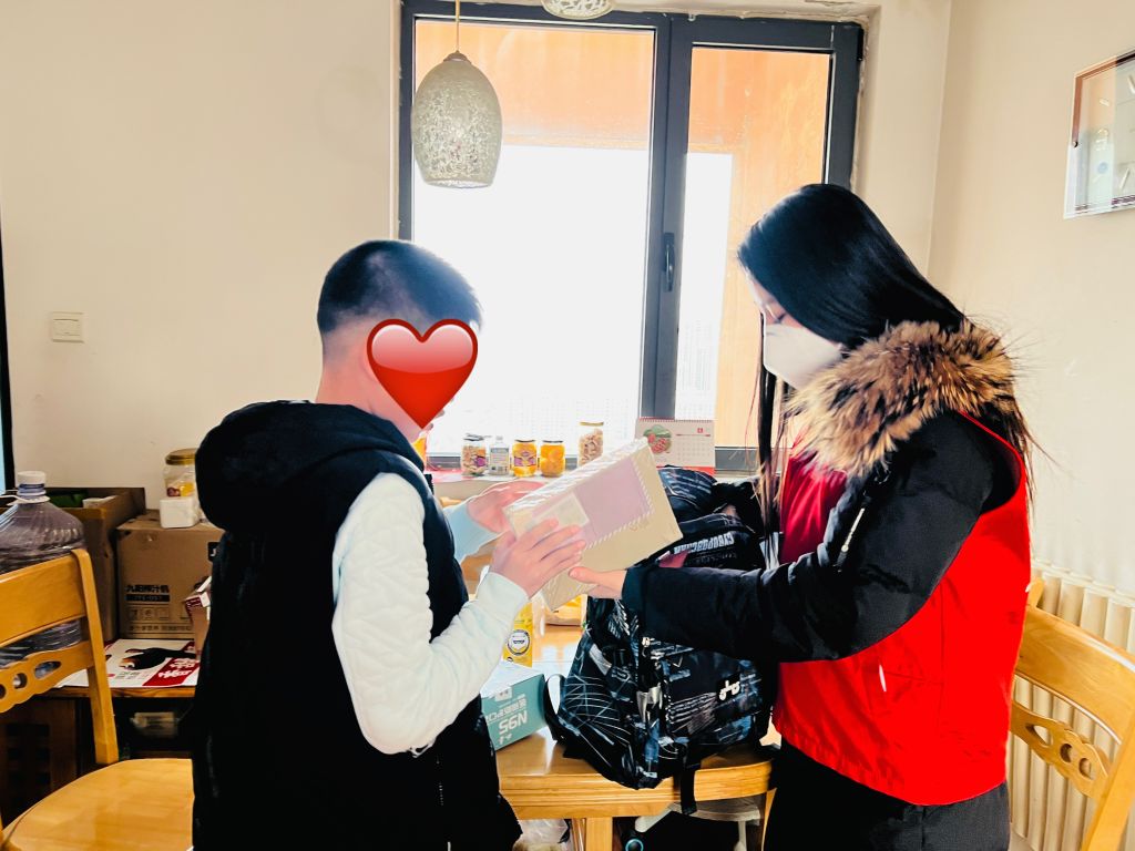 慰问过程中,社工为孤儿、事实无人抚养儿童送去新春礼物,并为其带去口罩等防疫物资。同时,与其监护人进行亲切交谈,充分了解儿童的生活、学习情况,并鼓励孩子们自信自强,乐观向上。同时,志愿者与其交流寒假期间的学习情况,激励孩子们好好学习。儿童是祖国的未来和希望,关心孤儿、事实无人抚养儿童更是我们坚守的责任。