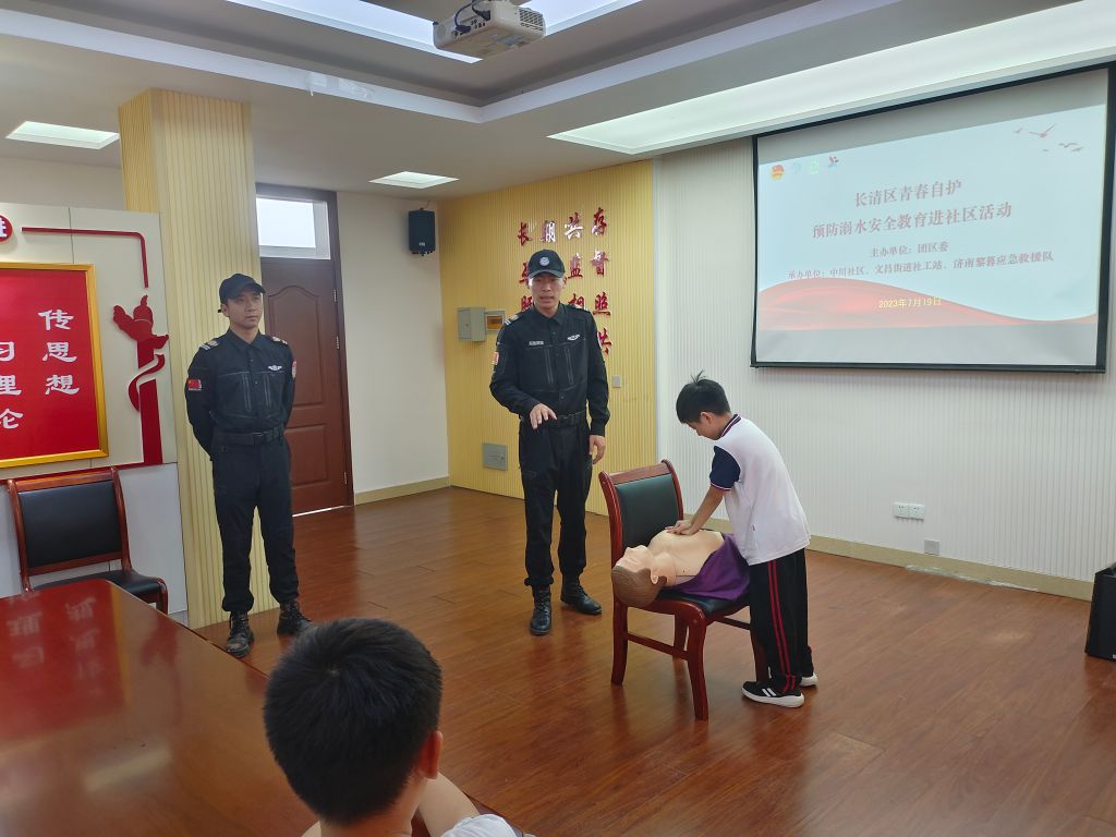 暑假期间,为进一步加强防溺水知识宣传,提高社区青少年预防溺水安全意识和自我保护能力,减少溺水事故发生,7月19日下午文昌街道社工联合中川社区链接济南黎暮应急救援大队开展防溺水安全知识宣传活动,向孩子们讲述了防溺水的预防措施、自救方法、救护方法等,强化安全意识,重视教育未成年人自觉远离水库、河流及水塘等危险区域。