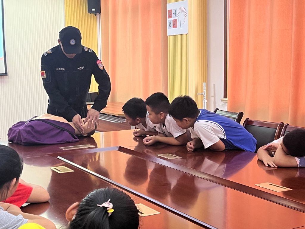 随后,黎暮救援人员讲解了如果遇到溺水事件怎样快速施救,示范急救方法,展示了海姆立克急救法、心脏复苏术等救援方法,小朋友们也积极参与进来,亲自练习并尝试急救措施。