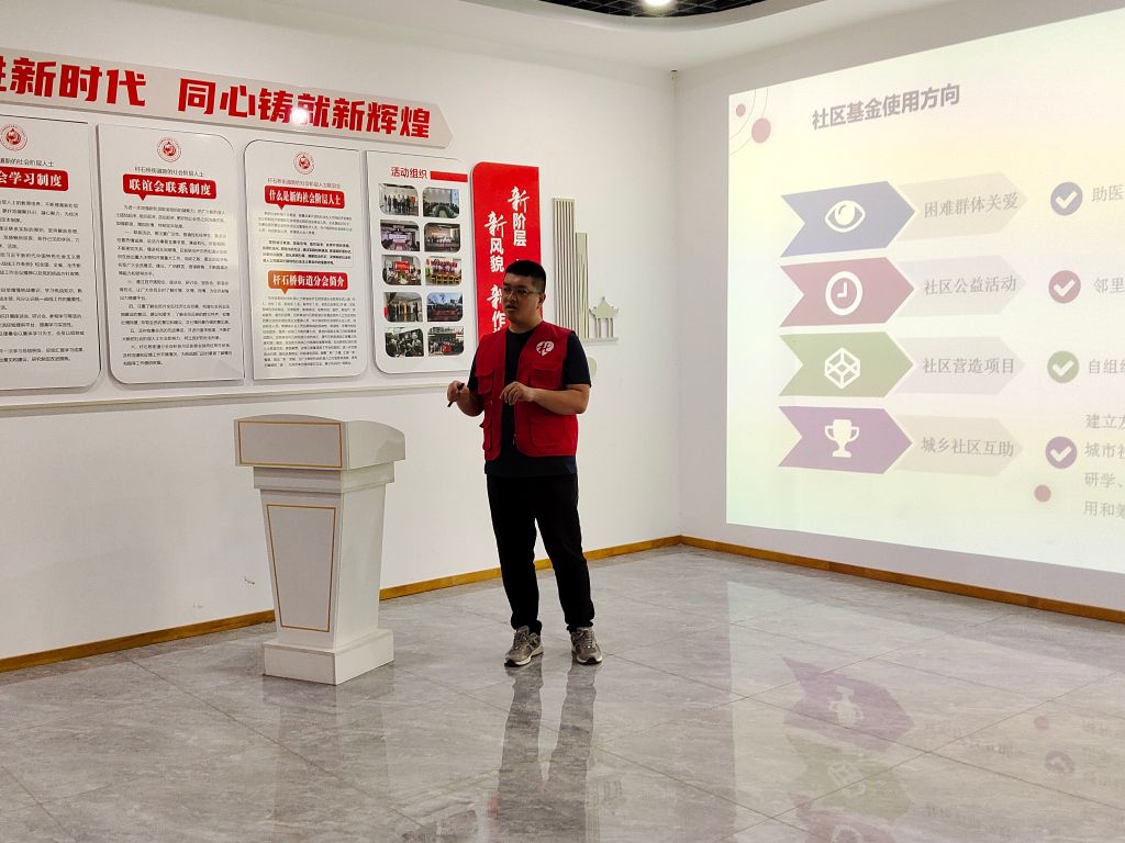 社工站站长张远鹏以PPT讲解的形式,重点围绕社区慈善基金的成立、运营、筹款、项目、结项等方面讲解培训,通过深入浅出分层次讲解,让社区书记和社区基金负责人员更直观的认识社区基金与社区治理的关系,提升了各成员对社区基金的认识和了解。