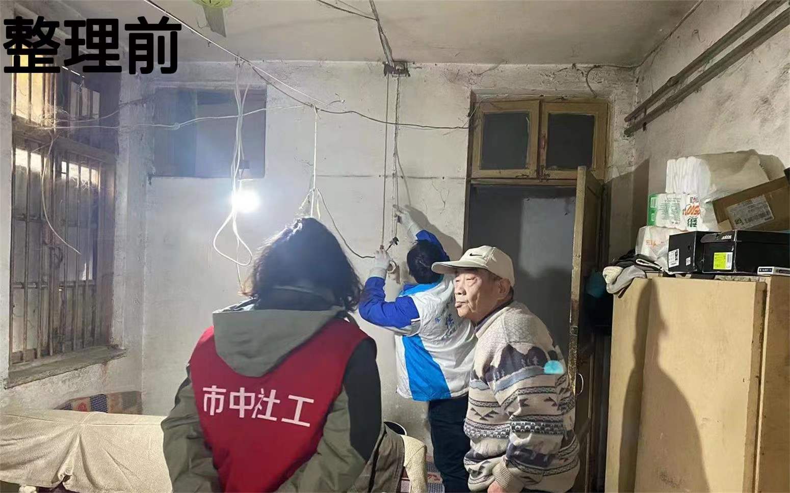 在走访中,社工站的社工们为每一户仔细排查了家中的电气线路安全隐患,并结合实际情况向他们讲解了家庭日常用火、用电、用气等方面的注意事项,提醒他们要时刻注意消防安全,提高自身防火的警惕性。在走访到特困户陈济宏老人家中时,发现老人家中电线比较杂乱,存在用电安全隐患,社工们及时联系辖区社区共享管家,“大拇哥”为其免费整理线路,及时的帮助老人解决了用电生活安全,确保了人身及生活安全,得到了老人称赞。