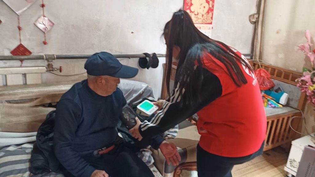 “大爷,我们来看看您,最近天气忽冷忽热,身体怎么样啊?”春季是高血压、糖尿病等慢性疾病治疗和保健的最佳季节,尤其是老年人更需要多加预防和注意,走访中社工自带测量仪器上门为孤寡老人和行动不便的残疾人量血压,并询问老人们目前的生活状态及实际困难需求,提醒老人天气变换要多注意增减衣物。