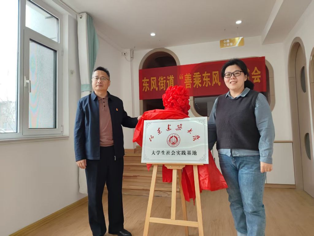 签约揭牌仪式在众人的期待中举行。双方代表郑重签署合作协议,随后共同为 “大学生社会实践基地” 揭牌。这一刻,标志着东风街道与山东建筑大学的合作正式拉开帷幕,双方将在人才培养、社区服务、文化建设等多领域展开深度合作。