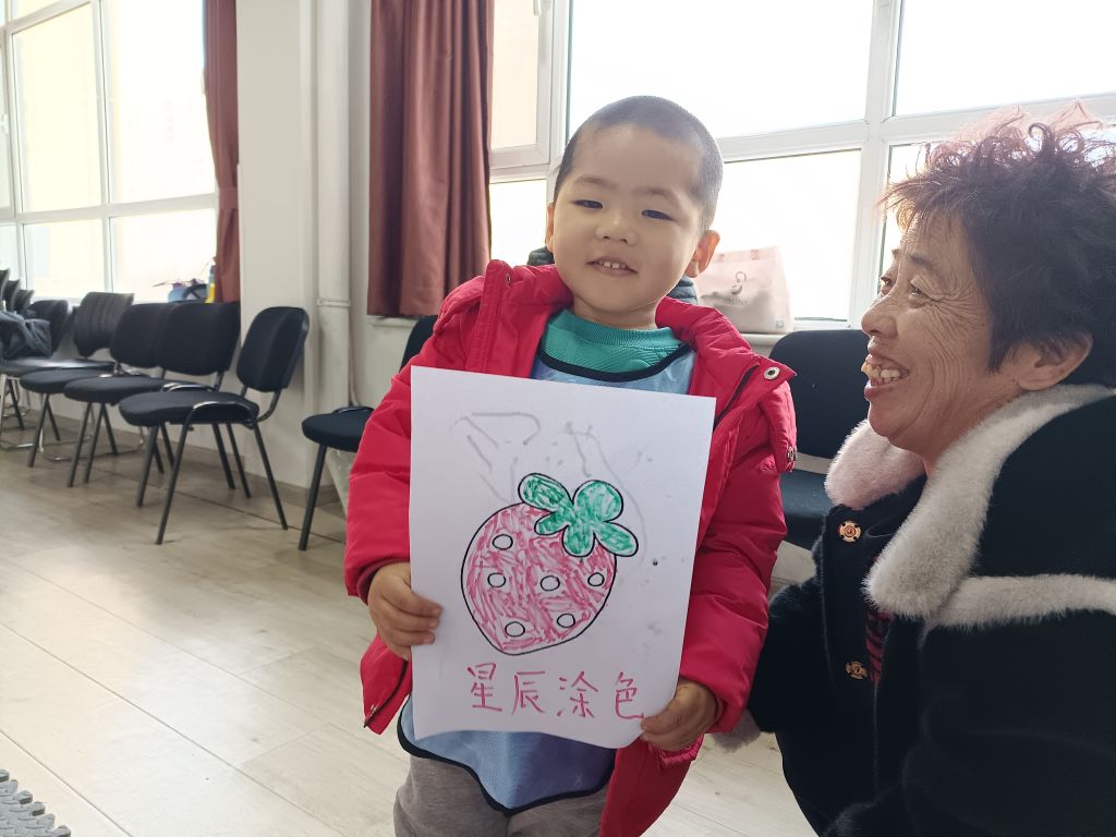 活动以热身游戏“快乐碰碰碰”拉开帷幕,幼儿们排好队依次来跳起砰击气球,不一会儿活动室内笑声此起彼伏,幼儿们也逐渐熟悉了活动环境并融入到活动氛围中。接着,幼儿们和老人们一起参与创意涂色游戏。孩子们手持着彩笔,和老人们一起动手涂抹色彩,共同创作出了一幅幅色彩斑斓的画作。这不仅培养了幼儿们的动手能力,也增进了彼此之间的情感。