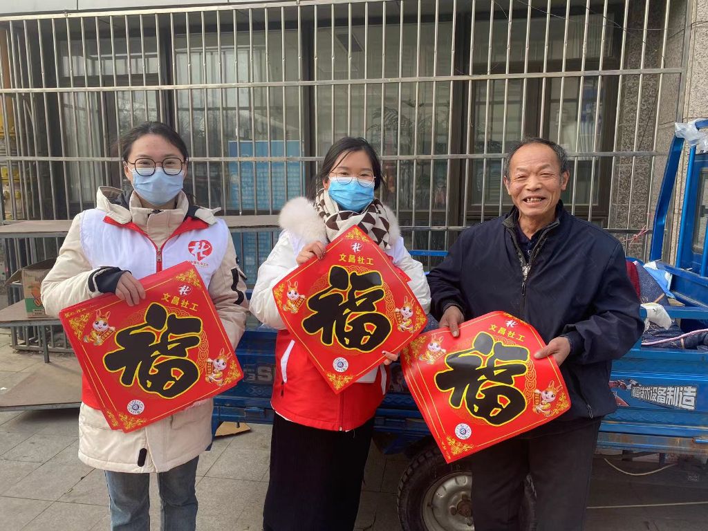 春节是中华民族祈福迎祥和的传统节日,福字是炎黄子孙营造节日氛围的文化传统,是弘扬中国民族优秀传统文化的良好形式,无论是现在还是过去,都寄托了人们对幸福生活的向往,也是对美好未来的祝福。为了迎接即将到来的春节,也为了宣传社工站服务内容,1月16日上午,文昌街道社工站开展了“喜迎癸卯年 福气到您家”送福活动。