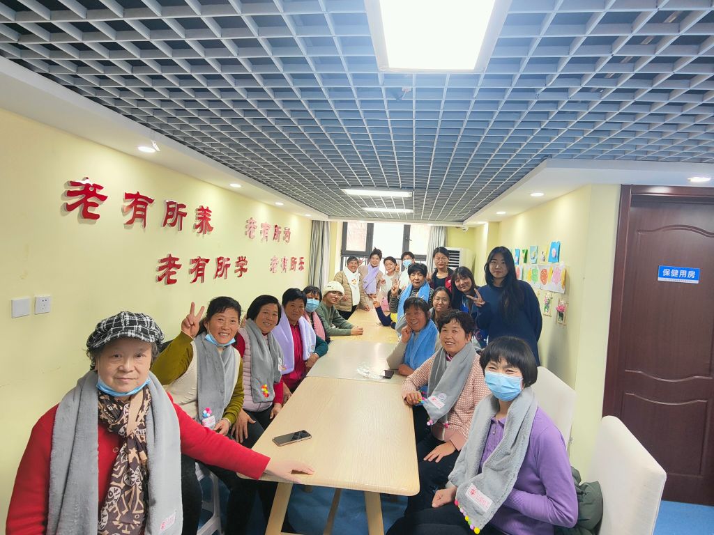 老有所为,老有所学。在本次缝制手工围巾开始,先由学生们为服务对象做示范,同时让服务对象在制作过程中帮助学生们一起做出暖和漂亮的围巾。通过让服务对象和学生们一起合作,在促进服务对象的成就感与获得感的同时,也让服务对象与社会年轻血液进行思想上的交流与融合,帮助服务对象社会融入和社会适应 ,帮助服务对象更好地获得自我认同感,激发服务对象主动参与,让服务对象学习掌握新的知识和技能。