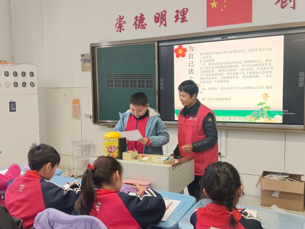 在活动的核心环节,社工老师向孩子们阐述了“送自己一朵小红花”的概念,鼓励他们发现自身的人格优势,肯定自己的价值和努力。同时,引导孩子们“送他人一朵小红花”,感受父母亲人、朋友和老师在日常生活中的关心与帮助,学会感恩与回馈。最后,孩子们还被鼓励“送未来一朵小红花”,大胆规划自己的未来,为梦想插上翅膀。