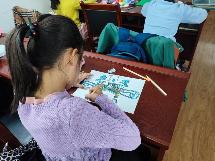 活动开始,社工先介绍了戏帽的背景及来源,志愿者老师详细讲解了戏帽的制作方法。随后,针对年龄的大小,分组教学,孩子们兴趣盎然。一张卡纸,一支勾线笔,随即勾勒出优美的线条;一把剪刀,几支水彩笔,一个漂亮的戏帽就呈现在孩子们的桌面;随后,孩子们发动想象力,有的用太空泥,有的用桃花完成了最后的装饰环节。在社工及志愿者老师的帮助下,每位孩子都完成了一幅漂亮的作品。活动结束,大家都意犹未尽,纷纷为我们的活动竖起大拇指。