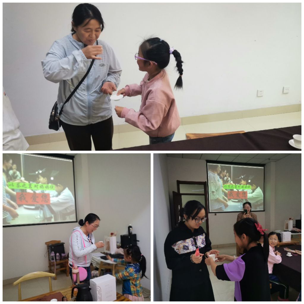 孩子们在茶艺老师的悉心指导下按传统的敬茶方式,为妈妈亲手奉上自己的劳动果实,一杯情真意切的香茗,当母亲喝到孩子亲手泡的热茶,听到一句句感恩、节日快乐的话语时,幸福之情溢于言表。