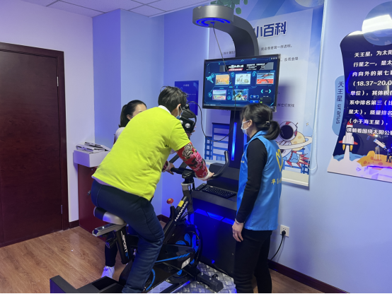 活动中,残疾人沉浸式体验华夏山青社区科普馆的各项设施,井然有序地观看和体验各种新奇、充满科技元素的展品,一件件蕴含科技原理的展项让大家新奇不已,纷纷动手体验互动。虽然动作略显生疏,反应不够敏捷,但在如康家园工作人员、社工、志愿者的鼓励下,他们纷纷沉浸其中。