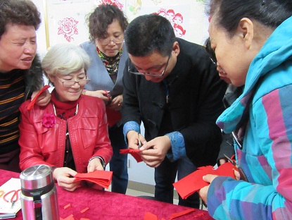 此次开班仪式由社区书记、主任芦泳主持,芦书记讲述了剪之韵民俗社的发展历程和前进目标。芦书记给大家介绍此次培训课程的老师,是山东省民间文艺家协会理事、济南市非遗剪纸代表性传承人、济南剪纸艺术院院长王涛。