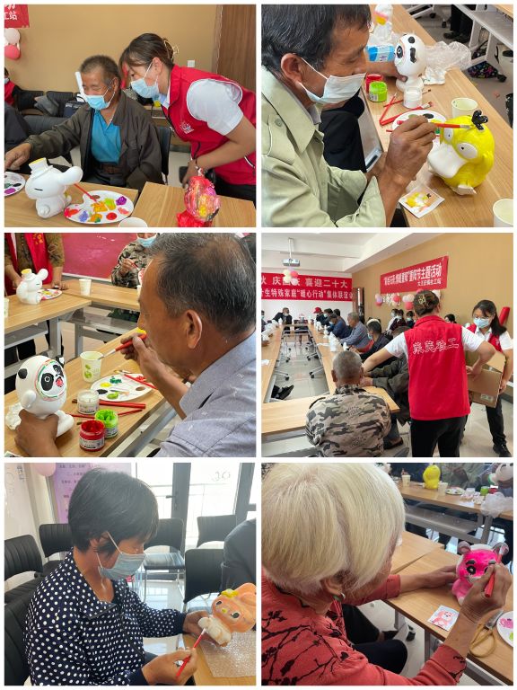 金秋美,重阳到,又是一年菊花黄、桂花香。为丰富失独老人重阳节的节日生活,2022年9月28日,大王庄镇社工站与计生办、团委共同开展了“彩绘石膏,爱在重阳”活动。