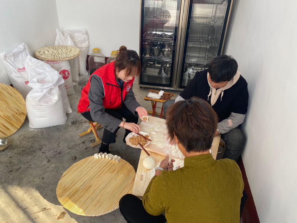 一大早社工便在幸福院门口迎接老人们的到来,老人们在社工的搀扶下依次就坐,随后社工在厨房为老人们清洗餐具、包水饺。上午幸福院揭牌仪式隆重举行,牛泉镇社工站链接“中国黄金”爱心志愿者,与牛泉镇民政办、社区社会组织联合会共同参加了幸福院揭牌仪式。幸福院内生活、娱乐设施齐全,可满足村内40余名高龄及孤寡老人的生活、娱乐需求,实现“老有所养、老有所依、老有所乐”。就餐现场,社工为老人们发放餐具、盛上热腾腾的饭菜,老人们个个都洋溢着幸福的笑容。“能在自己家门口的幸福院吃上好饭,还能在一起聊家常,心情也舒畅!”大爷高兴地说道。