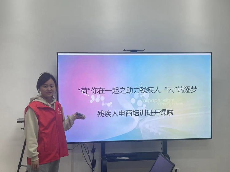 近年来,电商直播行业迅速发展,直播成为一种主流的销售模式。在残疾人群体中,由于受身体条件所限,部分残疾人不方便外出工作,就业面相对较窄,而网络直播带货的出现为残疾人提供了居家就业的好机会。为让残疾人能够通过电商直播这种新型营销方式来获取就业机会和实现自我价值,荷花路街道社工站开展“荷你一起,云端逐梦”项目。