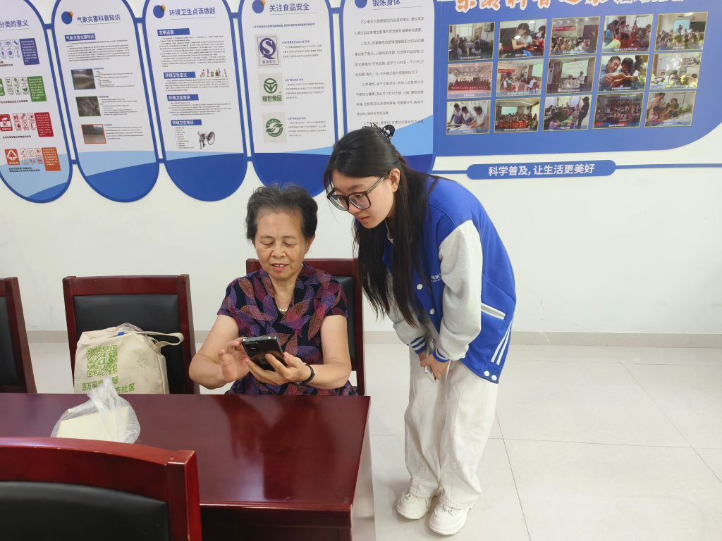 (社区老人对操作不熟练,社工协助老人“趁热打铁”)