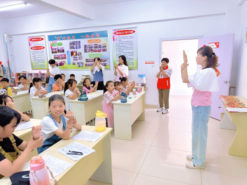 社工与孩子们介绍端午节的由来,分享屈原的故事以及端午节的习俗。志愿者们和孩子们共同学习有关端午的诗词,如苏轼的《南歌子.游赏》、文秀的《端午》等等,通过一句句诗词传递自己对民族英雄的怀念和对其“家国情怀”的敬仰。孩子们在诵读经典中亲近传统文化,感受中国传统节日的文化魅力,有助于激发孩子们的爱国主义情怀,进一步传承与弘扬中华民族精神。