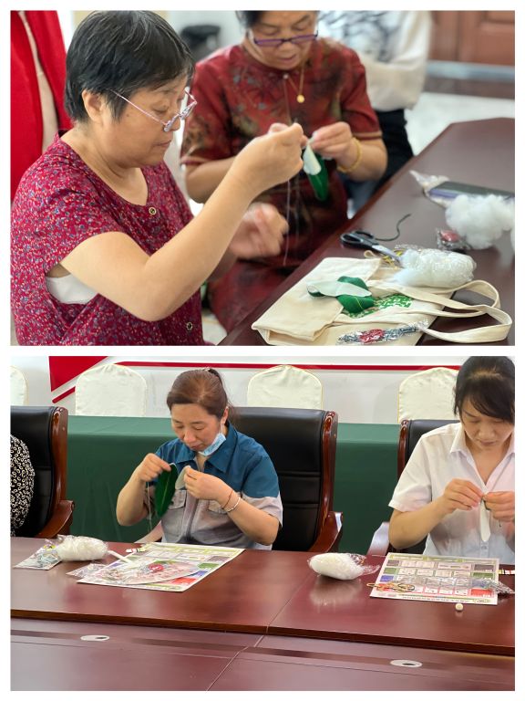 看着自己亲手缝制的香包,大家的脸上都露出了自豪的微笑。其中一位阿姨开心的说到:“这次香囊制作的活动特别有意义,既学习了传统文化,又增强了动手能力,香囊里还有中草药,能提神醒脑、驱虫灭菌,真的太实用了。”
