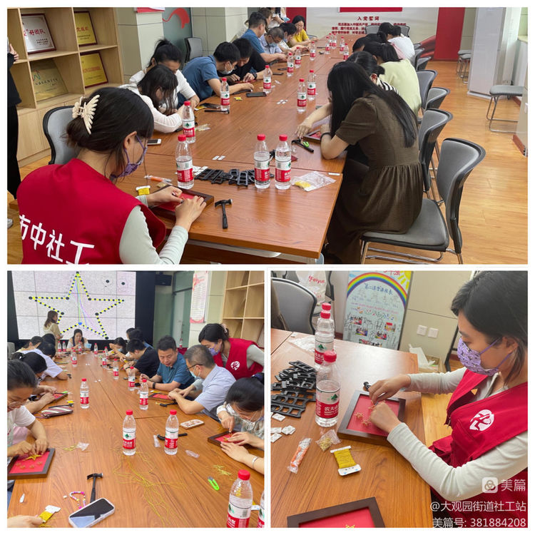 中国共产党百年风华正在建党101周年之际,2022年6月29日,大观园街道社工站联动睦和苑社区开展“五星红旗迎风飘扬-绕线画”活动。