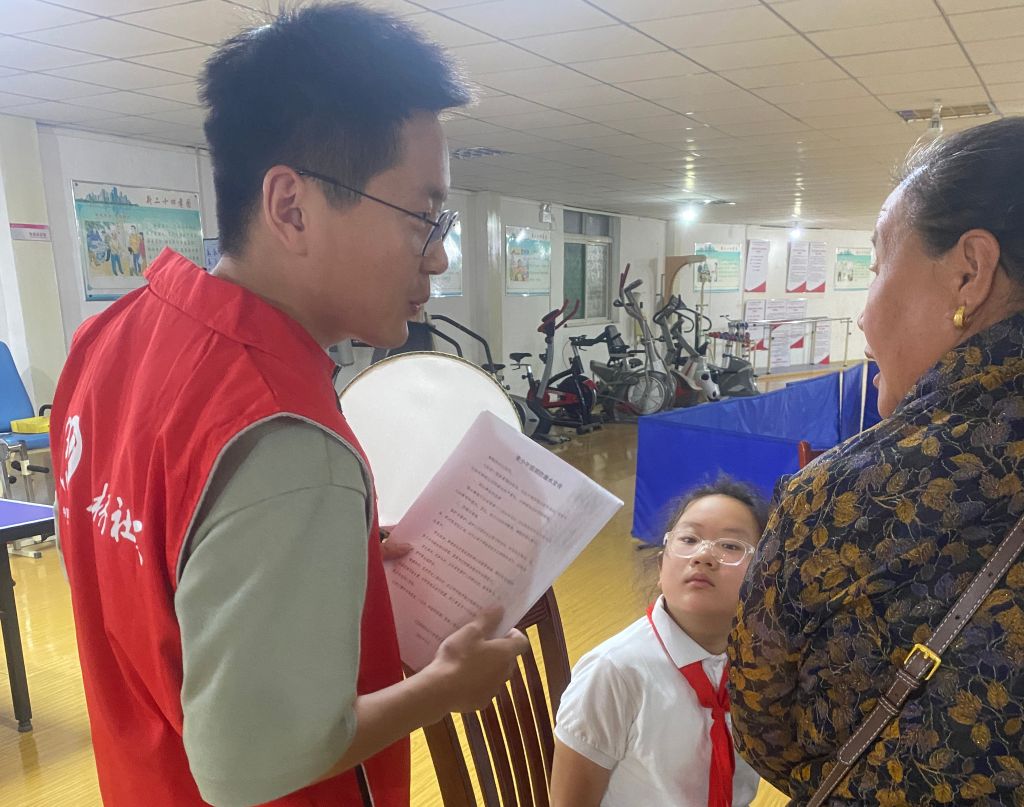 社工们在辖区广场的宣传栏,张贴宣传教育海报,在社区活动中心向儿童、家长们宣讲夏日游泳的注意事项、安全措施以及紧急自救方法,提高居民的安全意识。