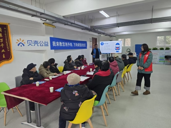 随着科技的迅猛发展,智能手机已成为日常生活中不可或缺的工具。然而,许多老年人由于缺乏相关知识,子女又不在身边,无法充分利用。为帮助社区老年人更好地适应现代信息社会,增强社交能力和生活便利,1月8日上午章丘区双山街道社工站联合章丘城际救援公益服务中心、贝壳公益在山水社区开展了一场“智慧养老 银龄乐学——我来教您用手机”活动。
