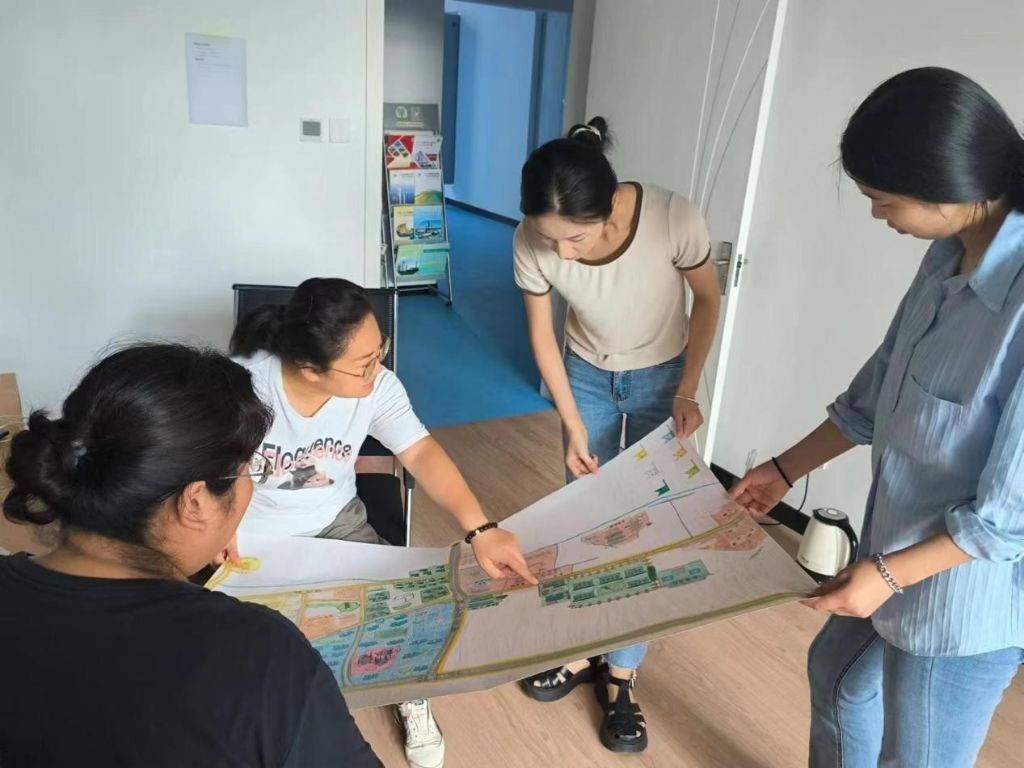 督导伊始,南辛庄街道站长通过手绘社区地图以及书面汇报的形式,分别从地理位置、社区资源、人口特征以及志愿骨干等方面向总干事李明叶汇报目前南辛庄街道所辖内六个社区的具体情况,以及近期内所开展的相关工作,包括走访社区以及入户等工作;同时对后续工作的计划做了简单的梳理,包括接下来的走访、社区活动以及专业培训等方面的工作。