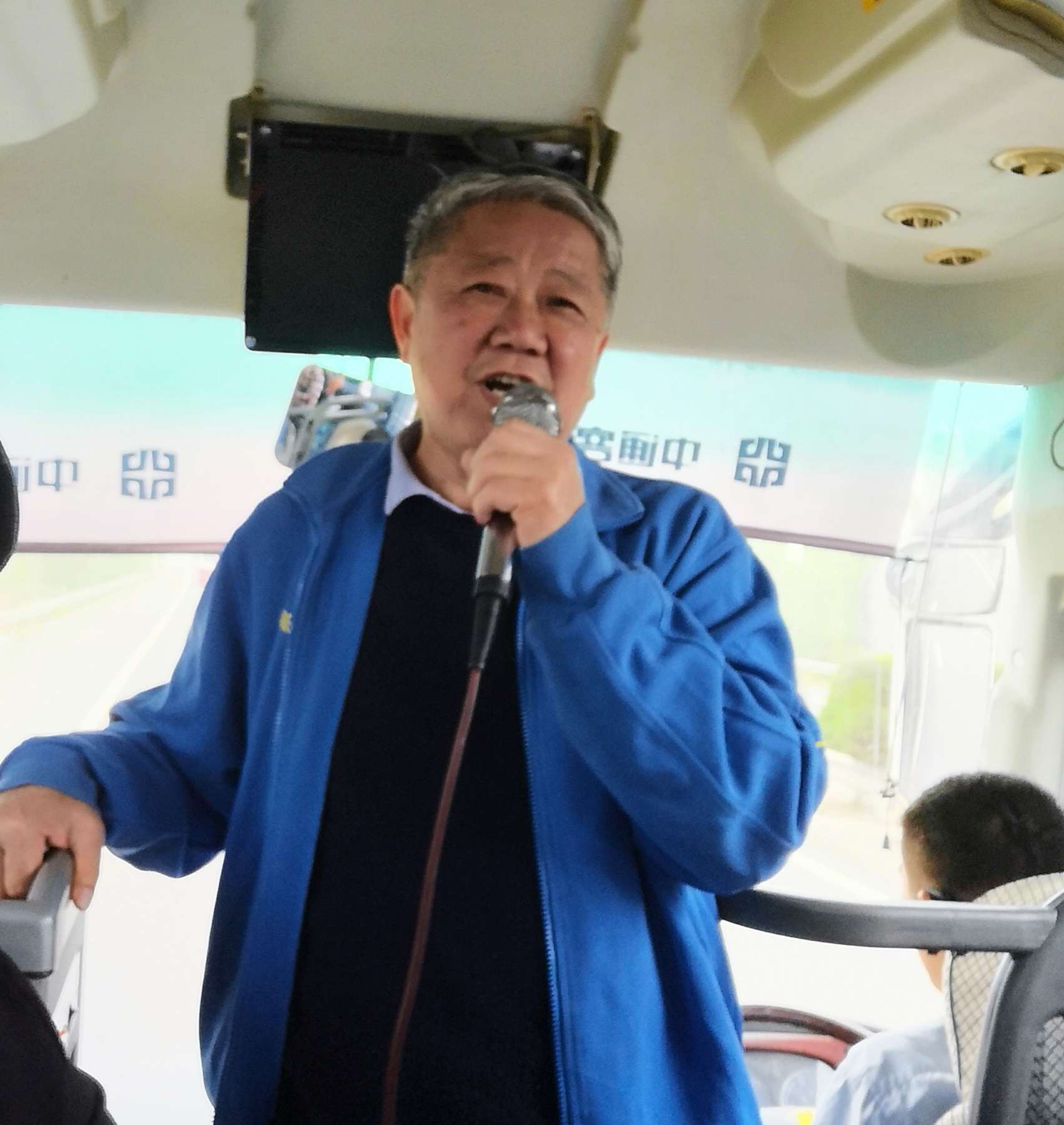 5月13日上午,开往平阴玫瑰园的大巴车上响起了一曲《故乡的小路》,这是王团长为甸柳一居广场舞队和电脑班成员献上的歌曲,看着大家情不自禁跟着哼唱的场景与露出的阳光笑容,王团长满心欢喜得又为大家演唱了《天边的骆驼》,博得一阵阵掌声。