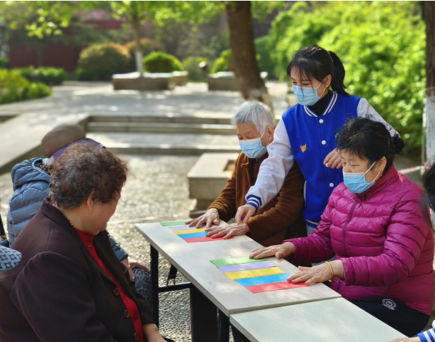 当我们在社区漫步和走访中总能在社区中看到不少老年照护者,他们或是照顾自己的父母,或是照顾自己的老伴,或是照顾自己的孙辈。在我们不断深入的面对面访谈中得知,老年照顾者有参与社区、融入社区、搭建互助平台的意愿,但因为需要照顾亲属而缺少机会参与社区事务。为了拉进我们与服务对象的距离,方便服务对象照护亲属,五里沟街道社工站将照护者聚在一起,用室外小组的形式为照护者搭建互助、喘息平台。