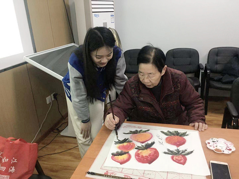 国画题材主要可分为山水画、花鸟画和人物画等,而花鸟画中的果蔬画,是最能体现市井生活和乡村风情的。本节课,社工链接外部资源,邀请专业国画老师,带大家了解了国画下的市井风情。国画之美,美在气韵、风骨和意境,国画老师给大家讲解了国画的相关知识,并带大家感受了国画之美。桃子在国画中较为常见,寓意健康长寿,用以表达对老人的爱戴和祝愿,国画老师带大家练习了国画桃子的画法,为社区老人献上了美好祝福。社区国画爱好者赵阿姨说:“我的好姐妹要过大寿了,我要将自己画的寿桃作品送给姐妹,这是最好的礼物”。王阿姨对本次活动表示了高度赞赏:“中国画代表了中国的文化,一点也不比外国的差,应该弘扬发展”。