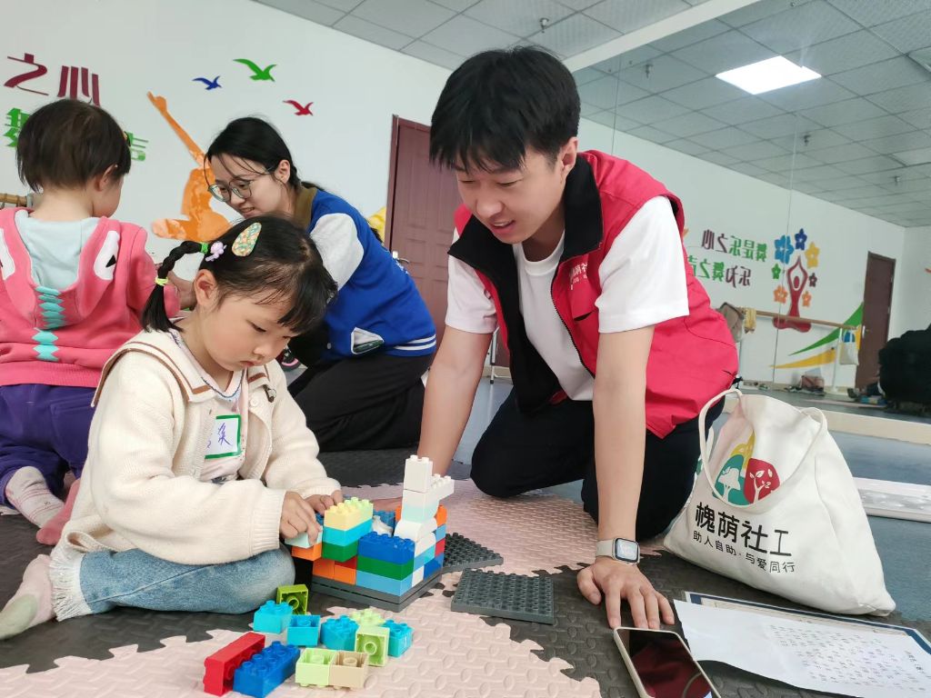 为加深隔代养育群体中幼儿对于数字、颜色、形状的认识,提高隔代养育照料者的照料经验,培养幼儿的动手力、认知力和思维能力,腊山街道社工站(以下简称“社工站”)联合山东大学志愿者队伍开展主题为“童趣拼搭,筑梦童年”的隔代养育亲子互动小组活动。