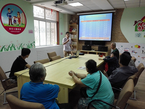 讲座开始后,颜冰老师从我国目前营养与健康的现状讲起,向在场居民讲解了如何掌握科学知识,走出营养误区,中国居民膳食结构,中国居民膳食指南以及中国居民膳食宝塔等知识。在讲解过程中还让大家观看了因饮食不合理而造成过度肥胖或过度消瘦的图像,从视觉感受上引起大家对健康饮食的重视。他讲到“吃可以吃出健康,吃可以吃出营养,吃也可以吃出疾病”,用通俗易懂、风趣幽默的语言,联系实际生活,把如何健康食粮用油穿插于日常的一日三餐中来讲解,并与在场居民互动,使大家在轻松愉快地氛围中获取了丰富的知识。