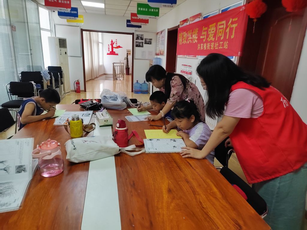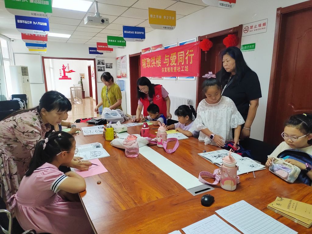 为了丰富辖区儿童的兴趣爱好,进一步激发他们感受美、发现美、创造美的情感体验和表达创作的快乐,为辖区儿童搭建一个学习交流的平台,7月25日上午,洪家楼街道社工站联合花园北区社区、洪家楼街道社区社会组织联合会共同开展“涵养童心 快乐一夏”暑期夏令营活动绘画活动。