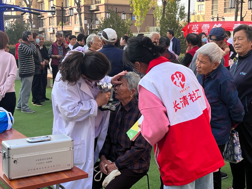 活动现场共设有5个摊位,在济南济北眼科医院摊位,医生针对中老年人常见的眼睛健康问题进行检查及健康普及,并针对存在的眼部疾病一一解答,给出合理建议;