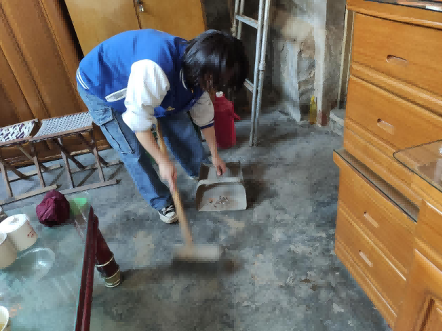 图 1 青年公园街道社会工作服务站社工入户对计划生育特殊困难老人进行卫生清洁