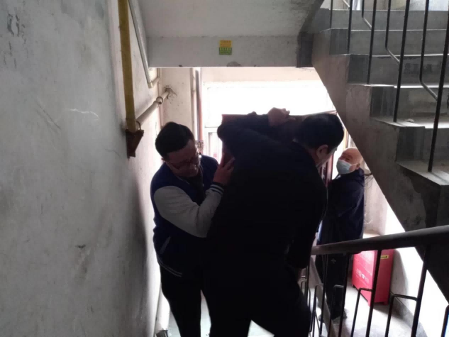 图 3 青年公园街道社会工作服务站社工为残疾人家庭搬运家具