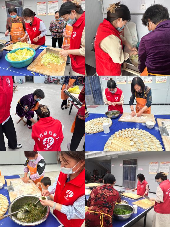 来到幸福院餐厅,地板整洁,桌椅干净,让来就餐的老人瞬间心情舒畅;院子里,社工跟志愿者有条不紊的包着饺子。一会的功夫韭菜馅、白菜馅、茴香馅的饺子已经准备好,只等老人们的到来。中午11点,老人们陆续赶到,他们相互打过招呼之后,围坐在一起。趁着就餐前的空闲时间,拉拉家常,现场其乐融融。看着老人都来的差不多了,社工跟志愿者开始下饺子,饺子一出锅顿时香气四溢。社工与志愿者把一盘盘热腾腾的饺子端到老人面前,让老人乐享幸福“食”光。