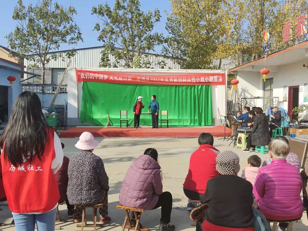 为丰富辖区长者文化生活,满足精神文化需求,提升辖区居民满意度,营造文明和谐的美好氛围。11月17日,由历城区文旅局主办,董家街道社工站协助文化站开展的“我们的中国梦 文化进万家”文化惠民活动在崔家村幸福院拉开帷幕,为长者们献上一场《吕剧》盛宴。社工通过前期对崔家村幸福院的调研工作,了解到幸福院长者重点需求在精神文化生活层面,社工站通过对接文化站沟通演出地点。与村委提前做好场地布置、消杀等常态化疫情防控工作,确保展演活动安全顺利展开。
