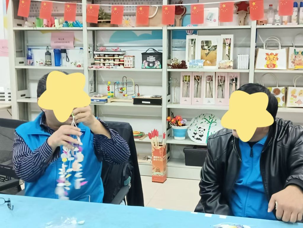 此次活动进行得十分顺利,虽然在过程中遇到了一些挑战。部分参与者由于身体条件的限制,难以灵活地操作工具,导致制作进度缓慢。但社工们及时调整了策略,采取了一对一的指导方式,确保每位参与者都能在自己的节奏下完成作品。同时,社工们还准备了辅助工具,帮助身体条件较为特殊的参与者更好地进行创作。