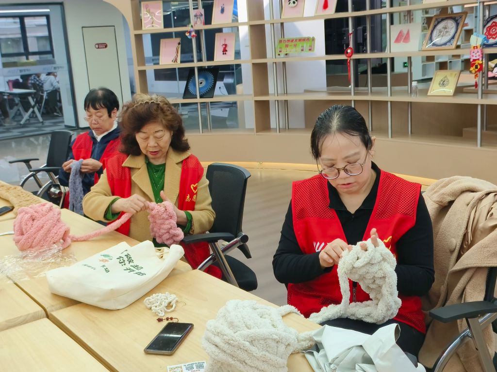 活动开始前,驻站社工链接“巧手公益坊”志愿服务队的队长周阿姨,与其说明活动内容与目标后,周阿姨热情地表示一定会带领队员完成这项“光荣”的任务。活动当天,社工为大家详细讲解了本次志愿服务的目的及意义,同时将编织流程、编制方法、编织过程中的注意事项呈现给大家志愿者们纷纷动起手来,怎么我的围巾编出来这么松小杨快教教我”在社工的指导和大家互相帮助下,逐渐掌握技巧,手指灵活地在线中穿梭很快,一个个可爱柔软的围巾就编织完成,每一份围巾都承载着一份祝福,大家看着编织好的成品,心里也温暖了起来。“希望孩子们喜欢”、“希望能给孩子们带去身心的温暖”志愿者们纷纷表示。